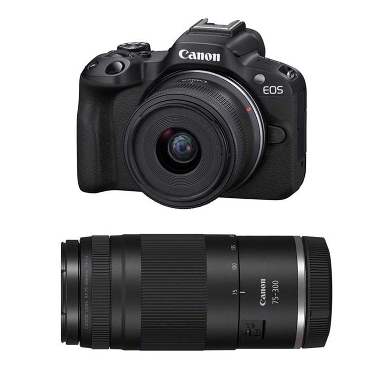 Canon eos r50 + rf-s 18-45mm f4.5-6.3 is stm + rf 75-300mm f4-5.6