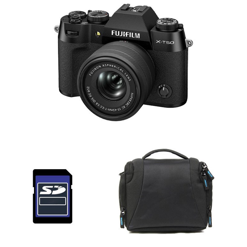 Fujifilm X-T50 noir + objectif 15-45mm f/3.5-5.6 pancake + sac et carte SD