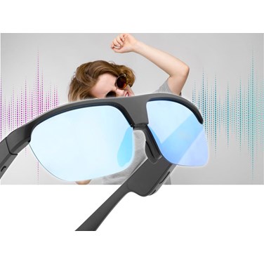 Profitez de votre playlist préférée grâce aux haut-parleurs intégrés à conduction osseuse. Un son clair, sans écouteurs, tout en restant attentif à votre environnement.