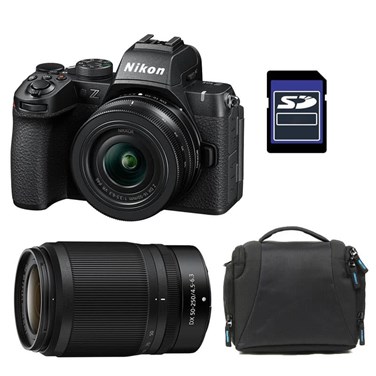 Nikon Z50 II + objectifs NIKKOR Z 16-50 DX f/3.5-6.3, 50-250 DX f/4.5-6.3 VR, sac et carte SD