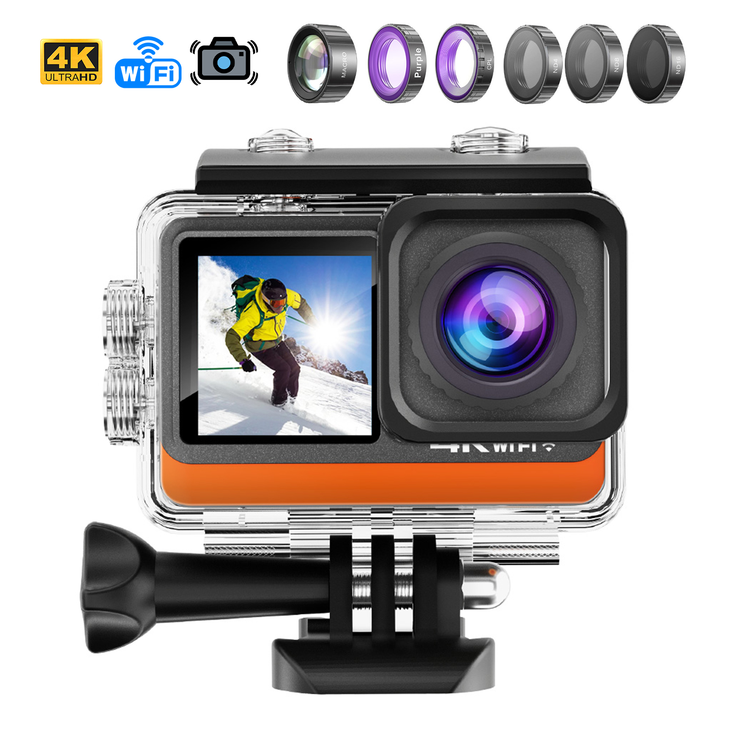 Caméra sportive m80 tr 4k 60fps avec 29 mpx, double écran.