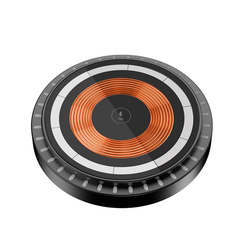 Base de chargement magsafe 15w avec lumières led ambiantes.
