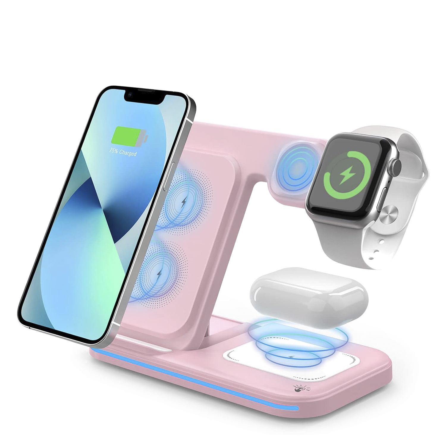 Base de chargement sans fil pliable 3 en 1. Base qi 15w double position.