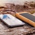 Batterie externe nature bambou qi 5w. 10000 mah. Charge solaire.