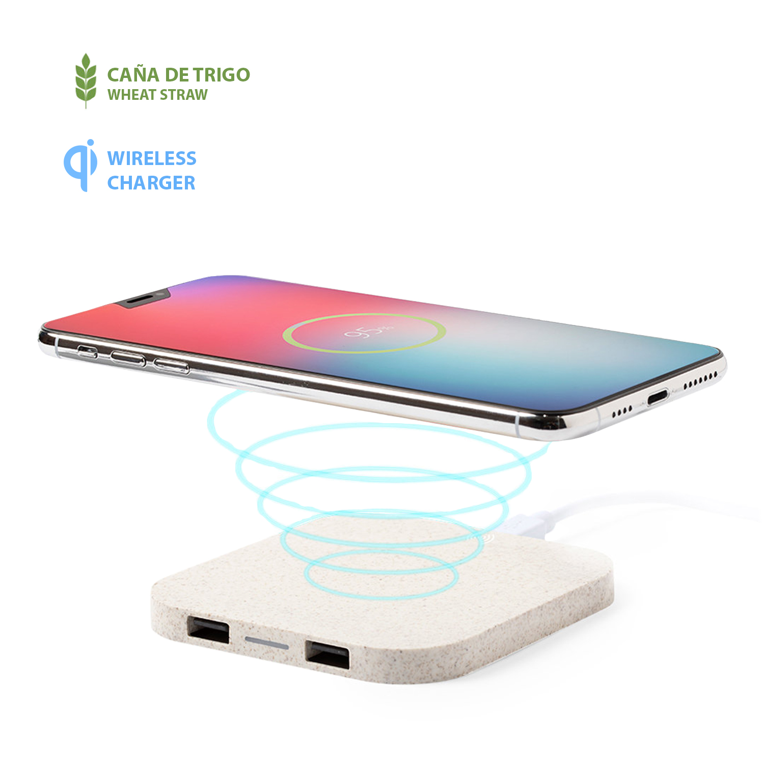 Chargeur riens qi sans fil, fabriqué avec de la paille de blé.
