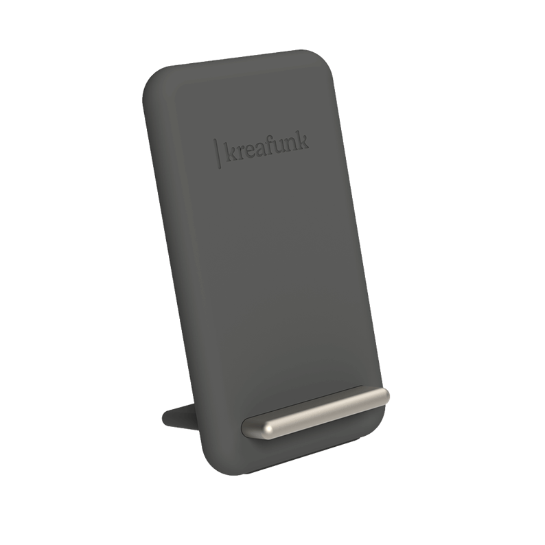 L'incomparable reCHARGE est le choix idéal pour votre table de chevet ou votre bureau. Il s'agit d'un support de charge sans fil avec une charge rapide de 15 W.