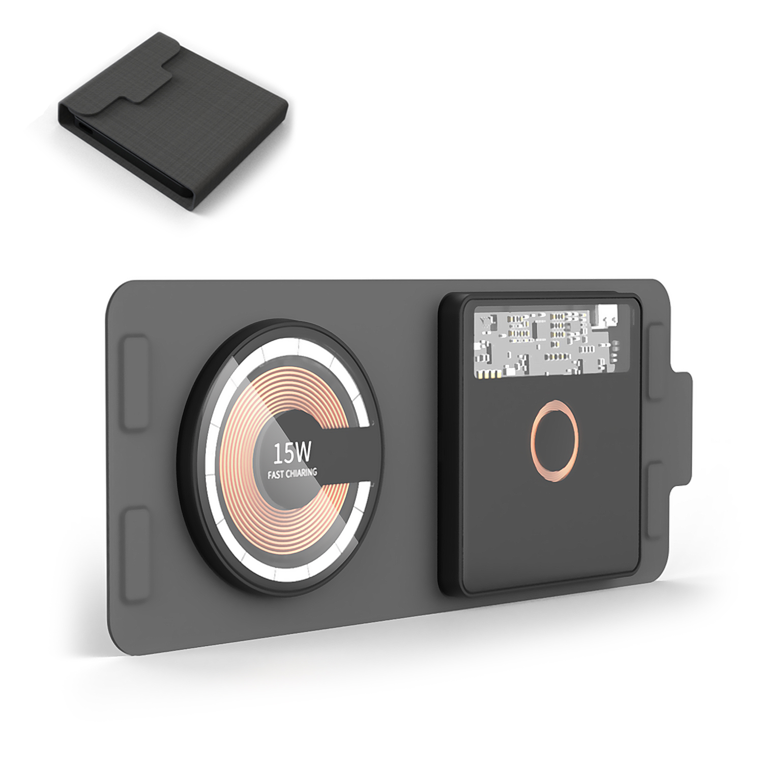 Chargeur sans fil pliable portable 15w, qi + magsafe. Base de charge double.