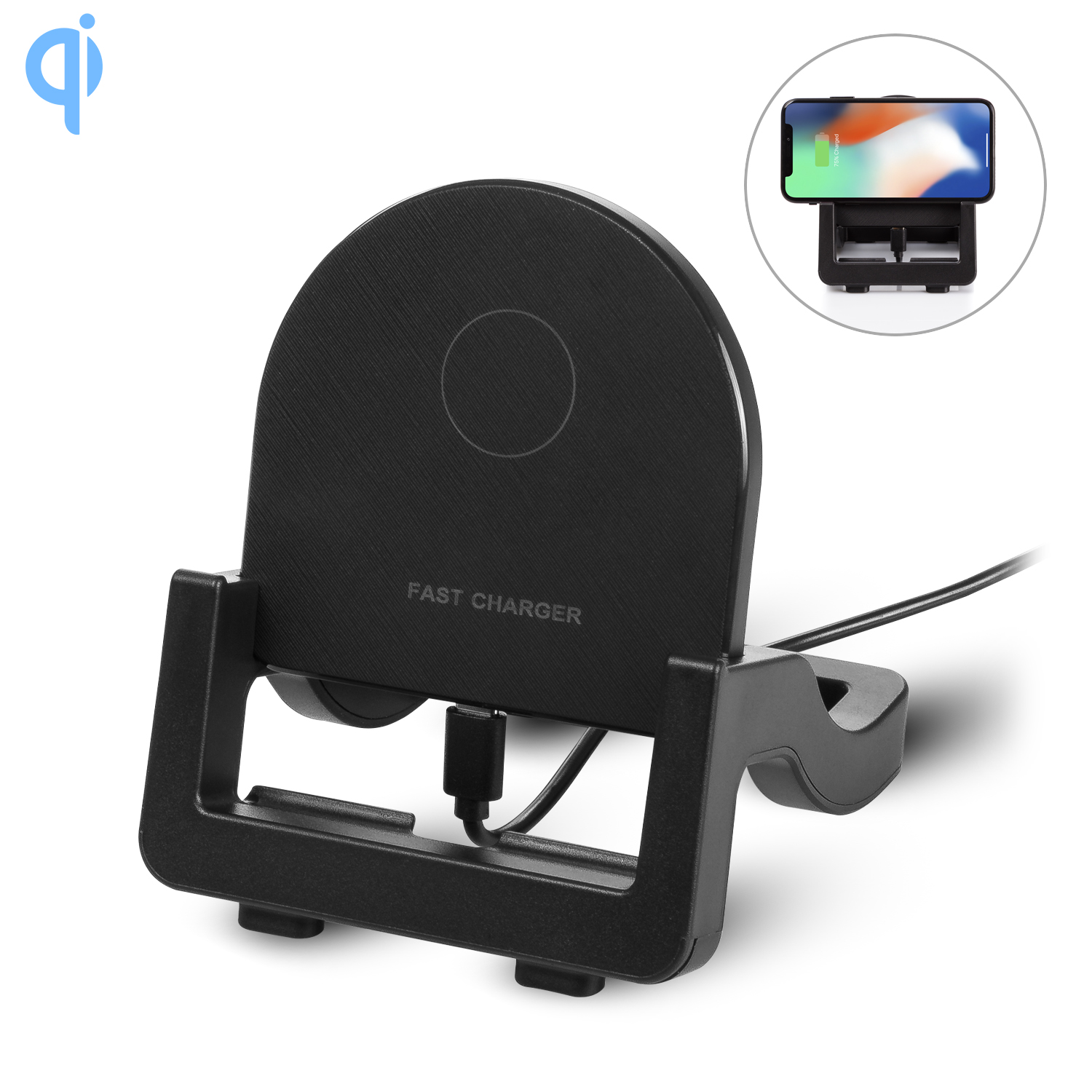 Chargeur sans fil rapide qi 15w. Support horizontal et vertical.