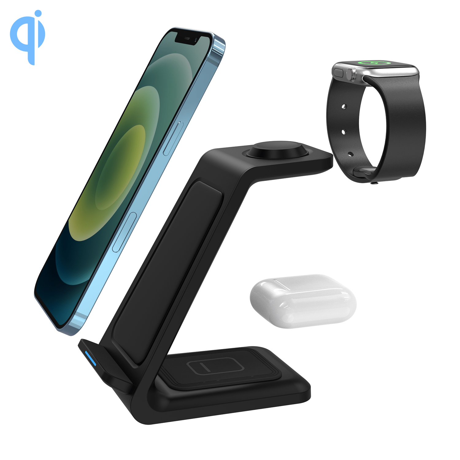 Station de charge 3 en 1 de 15w. Base de chargement sans fil qi.