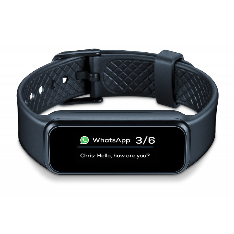 Montre fitness de suivi avec fonction message, mesure du pouls et déclencheur à distance de la caméra L'AS 99 Pulse Bluetooth® est le compagnon idéal pour un suivi optimal de l'activité et du sommeil. Il mesure le pouls au niveau du poignet à l'aide d'un capteur optique. Il permet également d'enregistrer la fréquence cardiaque en direct grâce à l'application adidas Runtastic. Mesure du pouls au niveau du poignet grâce à un capteur optique Notifications des appels, e-mails, SMS et messages Fonction Bluetooth® pour le transfert des données sur votre smartphone Écran tactile coloré Suivi de l'activité et du sommeil Affichage de l'activité et du sommeil et transfert des données sur votre smartphone Suivi de l'activité : nombre de pas, distance parcourue, calcul de la consommation de calories, durée de l'activité et atteinte de l'objectif quotidien Suivi du sommeil : enregistre l'activité de mouvement pendant le sommeil et la durée du sommeil Affichage de la date, de l'heure et de l'état de la batterie Capacité d'enregistrement de 5 jours/5 nuits Mémoire des mouvements/chronomètre Suivi en direct de la fréquence cardiaque via adidas Runtastic, etc. Fonction réveil : Alarme par vibrations Fonction de recherche intégrée (AS 99/smartphone) Batterie lithium-ion Étanche Contenu : Bracelet capteur d'activité AS 99 et câble de charge + support de charge Déclencheur à distance pour la caméra du smartphone Avec appli gratuite << beurer HealthManager Pro >>: ne perdez jamais de vue vos données de mesure et informations physiologiques