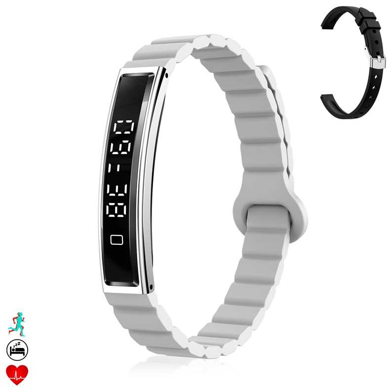 • Contient : 1x smartwatch, 1x bracelet en silicone, 1x câble USB de chargement magnétique, 1x manuel d'instructions.