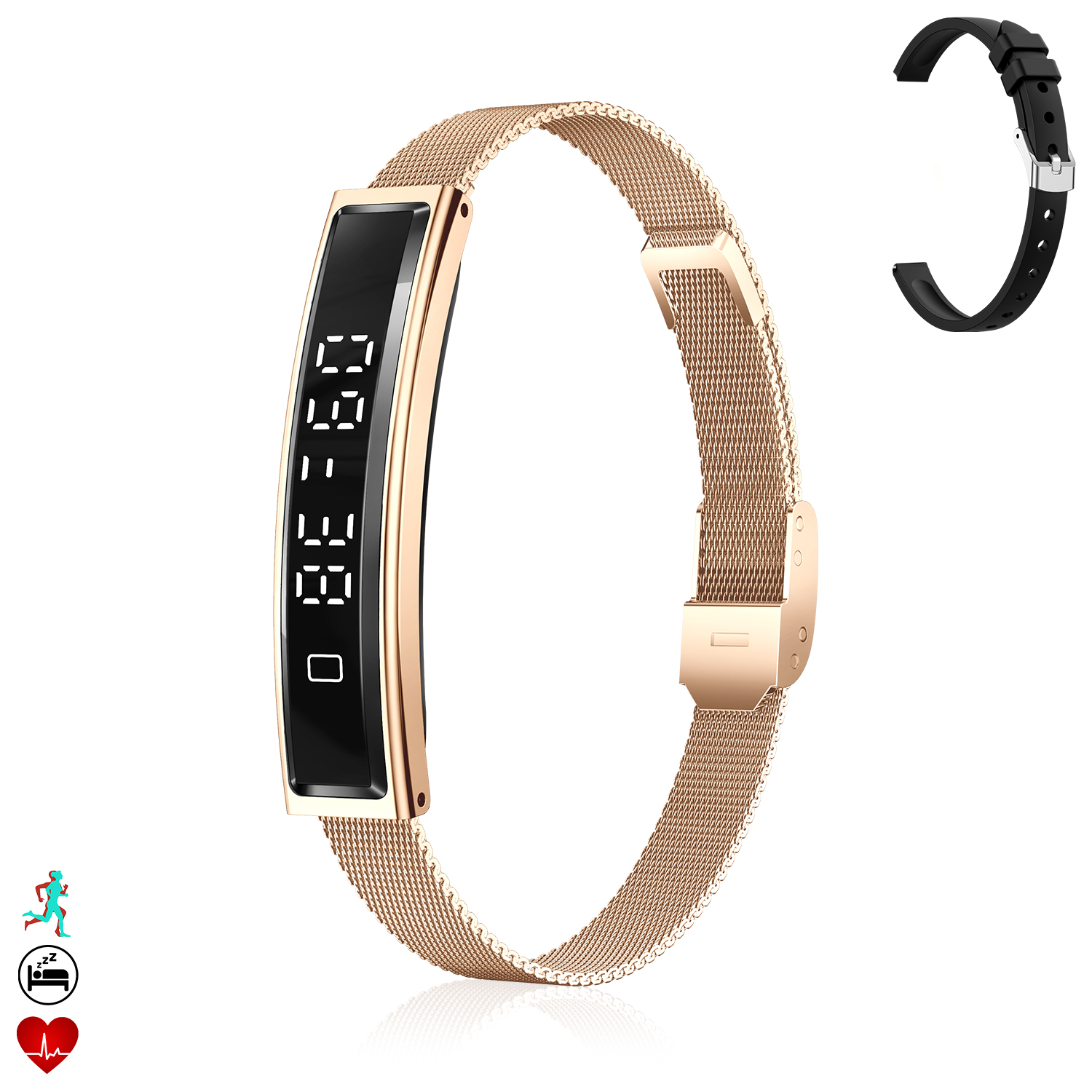 • Surveillance intelligente de la fréquence cardiaque 24 heures sur 24, score quotidien de gestion du stress pour comprendre comment votre corps gère le stress. Guidez votre respiration et discipline à travers le bracelet et vous aurez l'état de votre corps à portée de main.