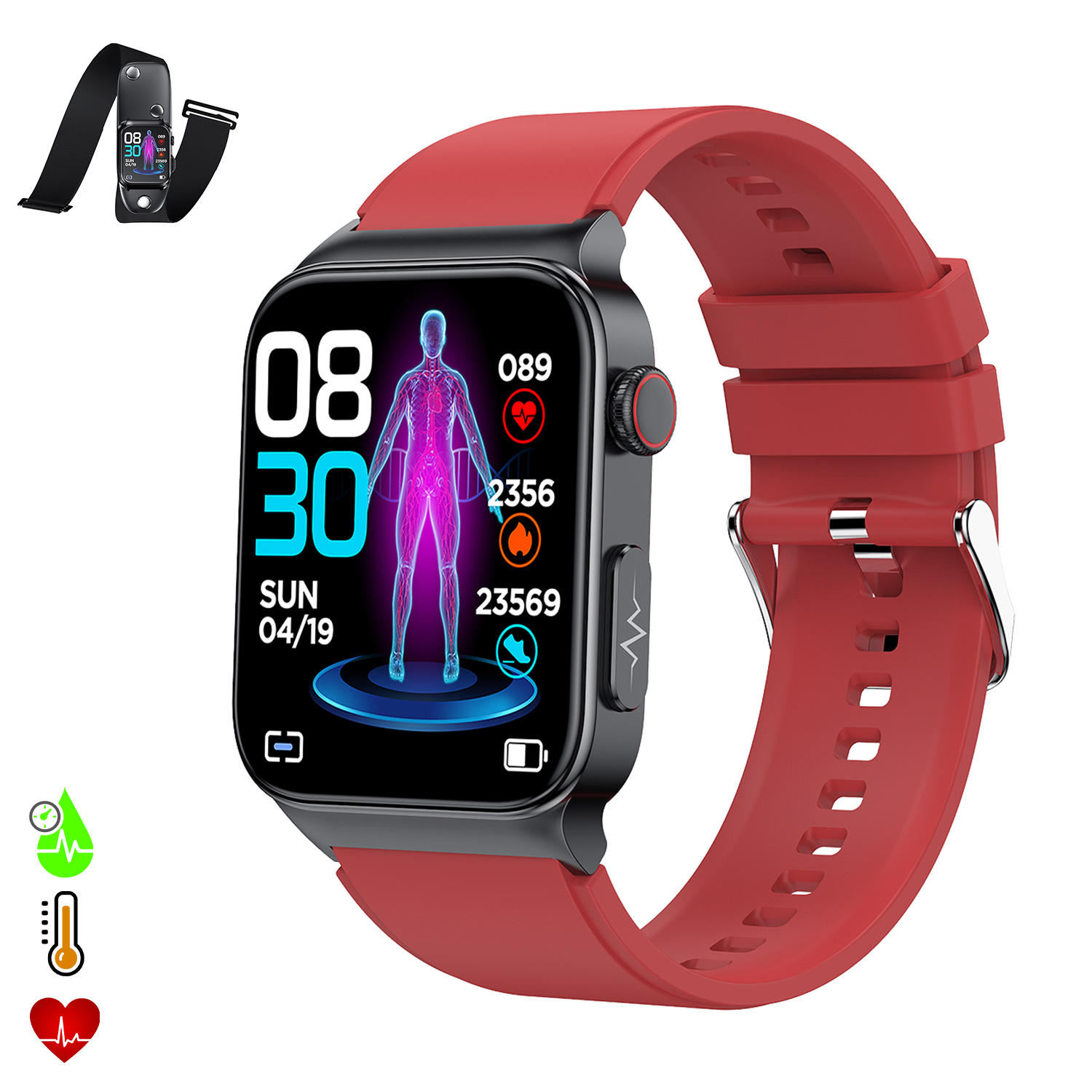 Smartwatch e500 avec détection de la glycémie, moniteur de tension et o2.
