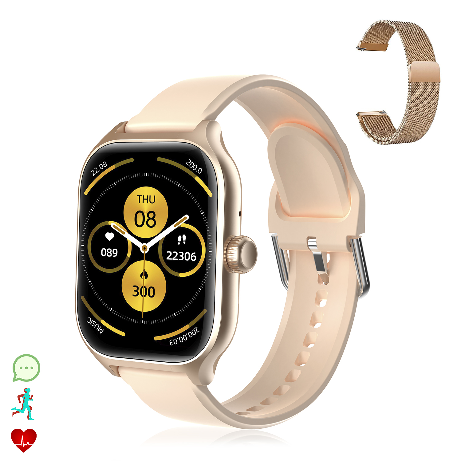 • Chronomètre, recherche de la montre (depuis l'application), recherche du smartphone, alarme, calendrier, calculatrice, SOS, jeu de compétences, déclencheur à distance de la caméra du smartphone, contrôle à distance de la lecture musicale sur votre téléphone et possibilité de lire l'audio de la musique depuis la montre. Accès à l'assistant vocal Siri et Ok Google (vérifier la disponibilité sur votre smartphone).