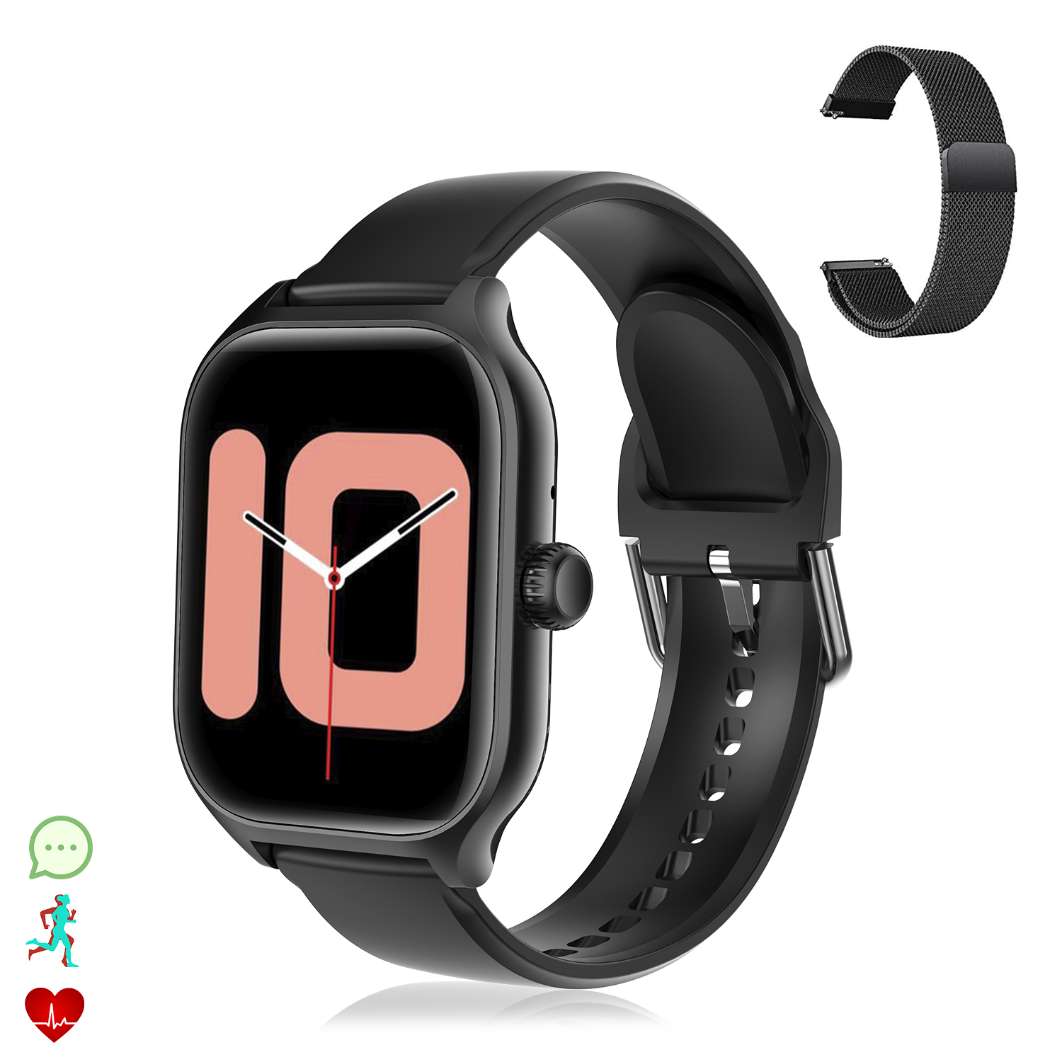 • Alerte d'appels entrants, vous pourrez répondre et parler depuis la montre elle-même. Avec numéroteur bluetooth. Alertes par vibration et agenda pour enregistrer vos contacts préférés.