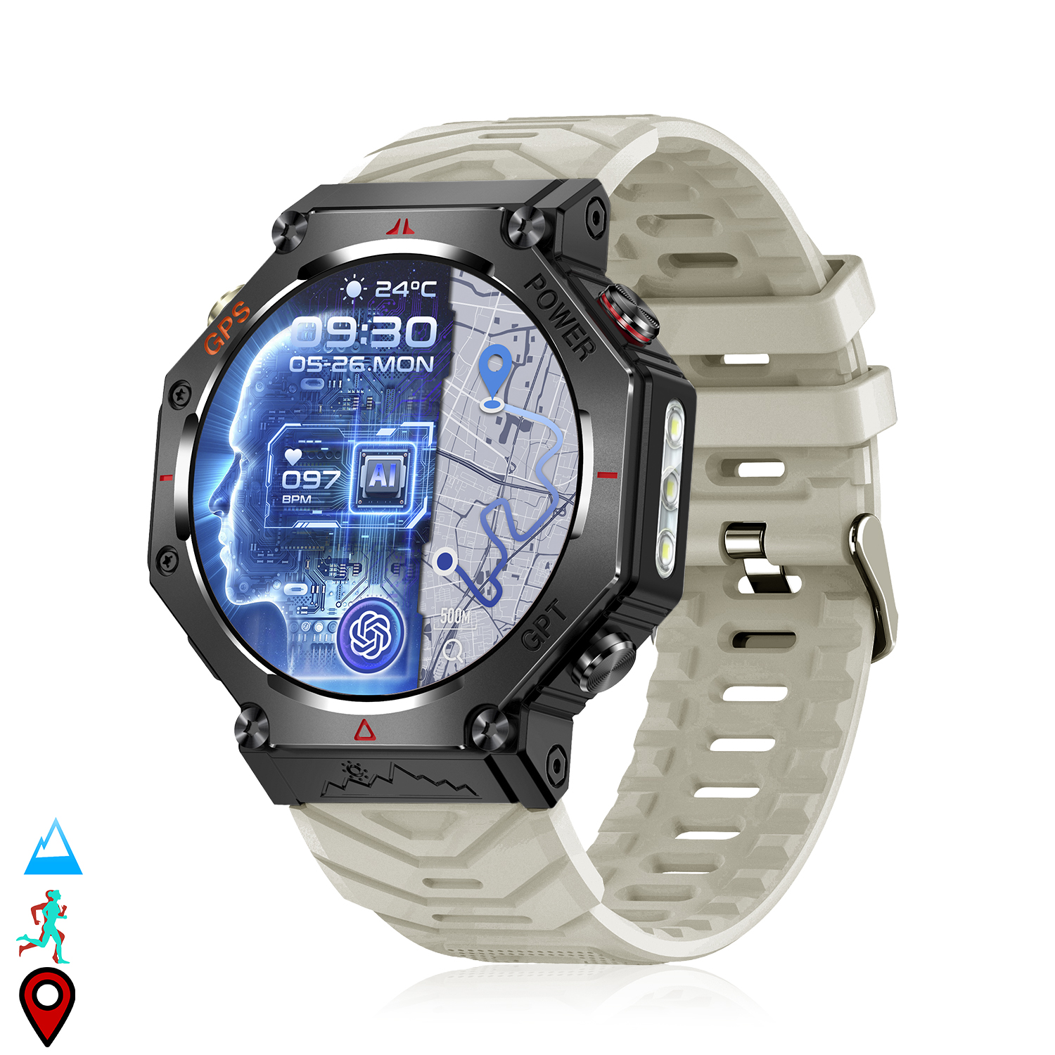 Smartwatch kc91 avec appels bt, gps, outils d'exploration, chatgpt.