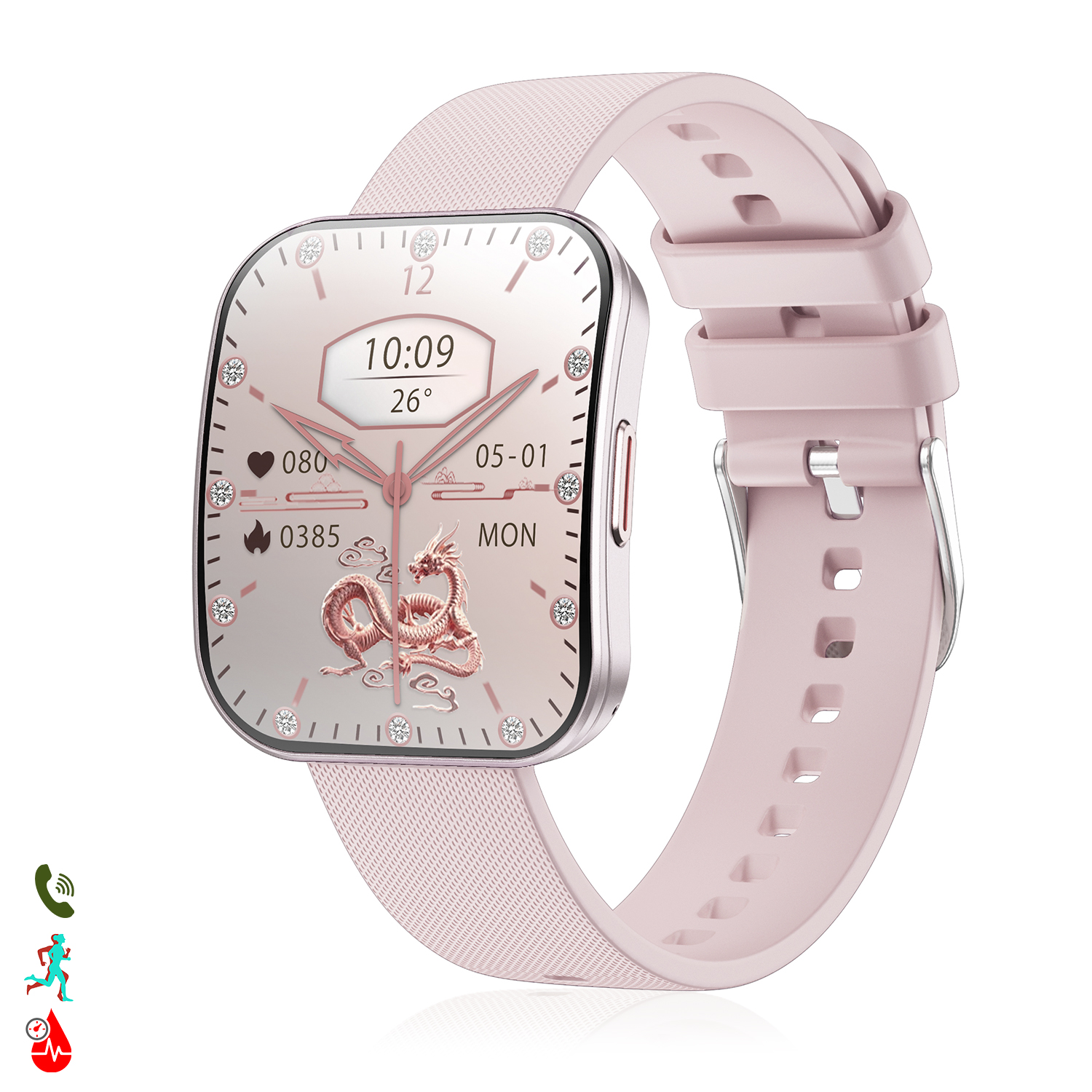 • Écran incurvé AMOLED de 1,85 pouces, résolution 390*450, entièrement tactile, avec réglage de la luminosité et allumage automatique en tournant le poignet.