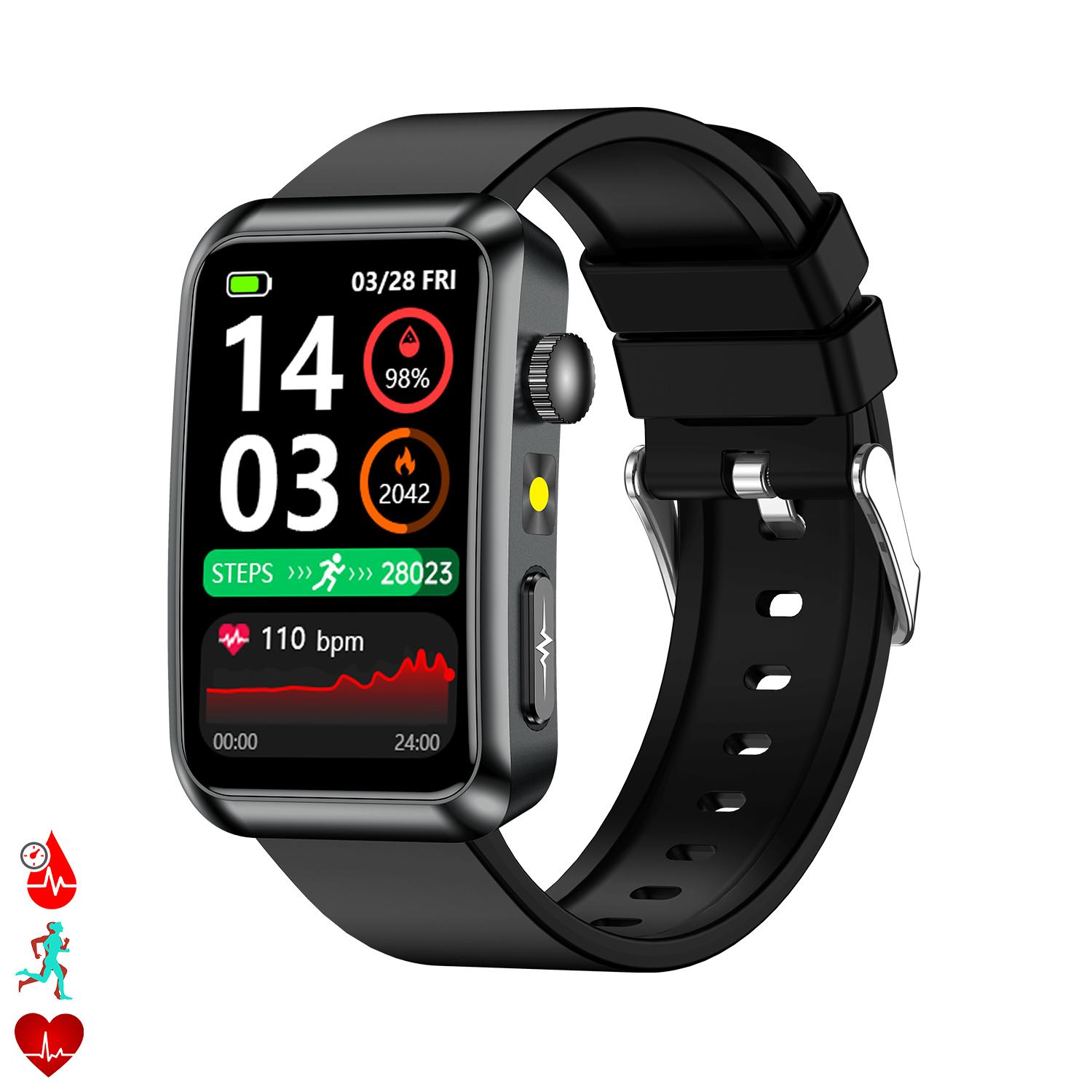 • Capteurs de fréquence cardiaque, oxygène dans le sang, pression artérielle, niveau de stress, activité électrodermale (EDA), glucose sanguin, lipides dans le sang, acide urique, composition corporelle, ECG et température corporelle.