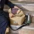 Inspirée des sacs étanches, la construction à fermeture roulée et doublure soudée est 100 % étanche.