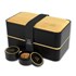 - Elle se compose de 2 niveaux fermés hermétiquement par un couvercle en bois de bambou et un élastique.
