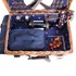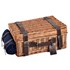 Ce panier a été fabriqué artisanalement en saule. Il est composé de 2 grandes sangles en cuir surpiqué, rivetées et terminées par 2 boucles en métal pour la fermeture. Une poignée en cuir surpiqué, rivetée permet de transporter facilement cette malle. Sur le côté, le panier est équipé de 2 sangles en cuir surpiqué pour y ranger la nappe.