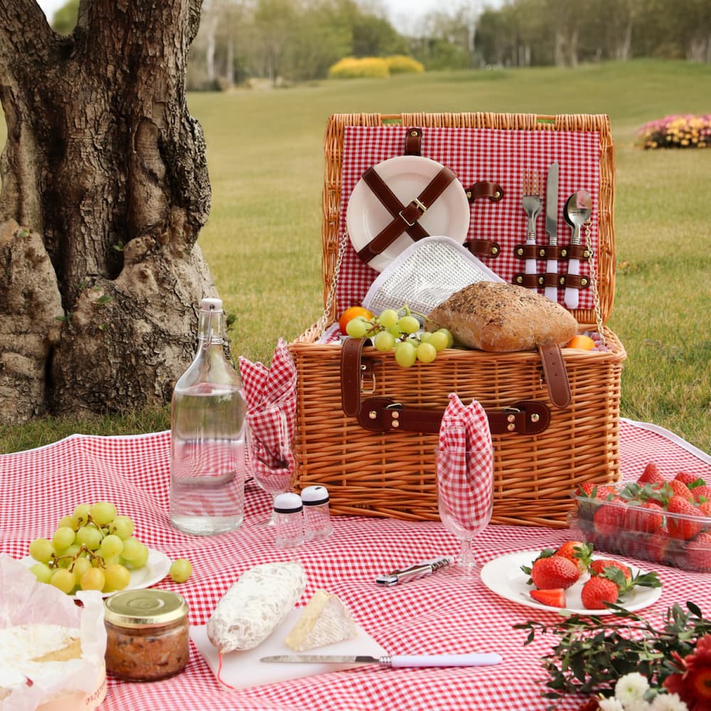 Le panier de pique-nique pour deux personnes mesure 42 cm de longueur, 32 cm de largeur et 23.5 cm de hauteur . Il est à la fois raffiné, pratique et compacte. Sa jolie nappe à carreaux, quant à elle, mesure 145 cm de longueur et 130 cm de largeur.