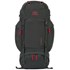 Le sac à dos a un compartiment principal avec une fermeture en haut que vous ouvrez et fermez au moyen d'un cordon de serrage. Ou via la fermeture éclair au bas du sac à dos. Dessus tombe le haut du sac qui est fixé avec deux fermetures à clip. Sur le couvercle, il y a une poche zippée à l'intérieur et à l'extérieur pour ranger de petits objets. Le dessus est également équipé de 4 yeux où vous pouvez, par exemple, attacher votre tapis de couchage. Les 2 poches latérales équipées d'une fermeture éclair offrent également beaucoup d'espace de rangement supplémentaire. L'avant du sac a une bande élastique entre laquelle vous pouvez serrer un gilet ou une veste.