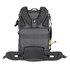 Un rabat à ouverture frontale complète permet un accès facile par le haut à l'appareil photo/téléobjectif et à la moitié supérieure du compartiment contenant les objectifs supplémentaires, tandis que la moitié inférieure de chaque compartiment est accessible par l'arrière. L'accès arrière comprend également un compartiment pour ordinateur portable 16 pouces.