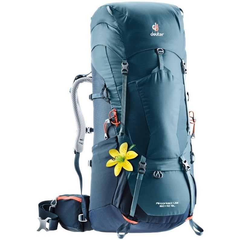 LA COULEUR CORRESPOND A LA PREMIERE IMAGE. Description du sac à dos Aircontact Lite 60+10 SL Deuter Arctic NavyLa gamme Deuter Aircontact Lite s'apparente à la gamme Deuter Aircontact mais en mieux et notamment au niveau du poids. Résultat : on a une vraie sensation de plus de légèreté sur le dos et de plus de confort en comparaison avec un sac à dos classique. De plus, on est ici en présence d'un modèle SL : sac Deuter Aircontact Lite 60+10 SL. Autrement dit, il s'agit d'un modèle développé pour la gente féminine. Dans les faits, cela se traduit par un dos un moins long (pour soulager le bas du dos et le bas de la nuque), des bretelles redessinées (pour soulager la poitrine) et une ceinture plus confortable au niveau des hanches (avec un vrai report de charge). Le résultat est sans appel : même rempli au maximum (capacité maximale : 70 litres), le sac à dos Deuter Aircontact Lite 60+10 SL reste très confortable. Il est aussi très aéré : cheminée de ventilation et rembourrages en matériaux aérés. Il convient à n'importe quel gabarit de femme : on peut ajuster le dos en hauteur (dos Aircontact Lite avec réglage Vari Quick). Il convient également à n'importe quel type de grande randonnée, de grand trekking ou de grand voyage à pied : ses 70 litres permettent d'emmener tout le matériel nécessaire à votre aventure.Le sac à dos Deuter Aircontact Lite 60+10 SL Arctic Navy en détail :C'est certes un sac à dos avec beaucoup de confort, avec une vraie aération du dos et avec un poids allégé. Et c'est aussi un sac avec des propositions de rangement extrêmement pratiques : 10 poches très fonctionnelles et très différentes auxquelles s'ajoutent plusieurs porte-matériels en façade et sur les côtés. Chacune des 10 poches a une vraie utilité. On a la poche principale pour le gros des affaires. On a deux poches de petite taille de part et d'autre de la ceinture pour plusieurs objets de type téléphone. On a deux poches de moyenne taille au dessus et en dessous du rabat pour les accessoires importants et pour les affaires de secours. On a deux poches extensibles sur le côté droit et sur le côté gauche du sac pour la gourde et un en-cas. On a une grande poche à accès immédiat sur l'avant du sac à dos pour un vêtement. On a une grande poche située sous la poche principale pour un sac de couchage par exemple. Et on a une poche résistante à l'eau dans la poche principale pour les vêtements mouillés ou pour le système d'hydratation. Construction Ripstop : sac de trekking résistant.Garantie DeuterDeux années de garantie sont incluses avec tout sac à dos Deuter Aircontact Lite SL. La garantie vaut pour tout défaut de matériel ou de fabrication.