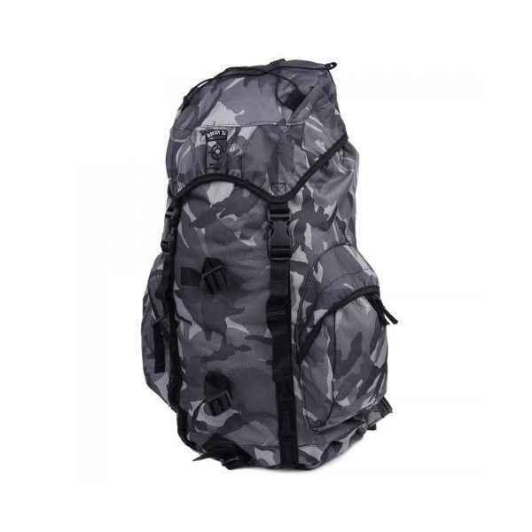 Les Fostex le sac à dos Recon night Camo 35 litres - camouflage Night Noir-Gris est équipé d'un grand compartiment qui peut être resserré avec un cordon et fermé par deux boucles Duraflex. De plus, le sac à dos est équipé de deux poches latérales avec fermetures éclair pour encore plus d'options de rangement.