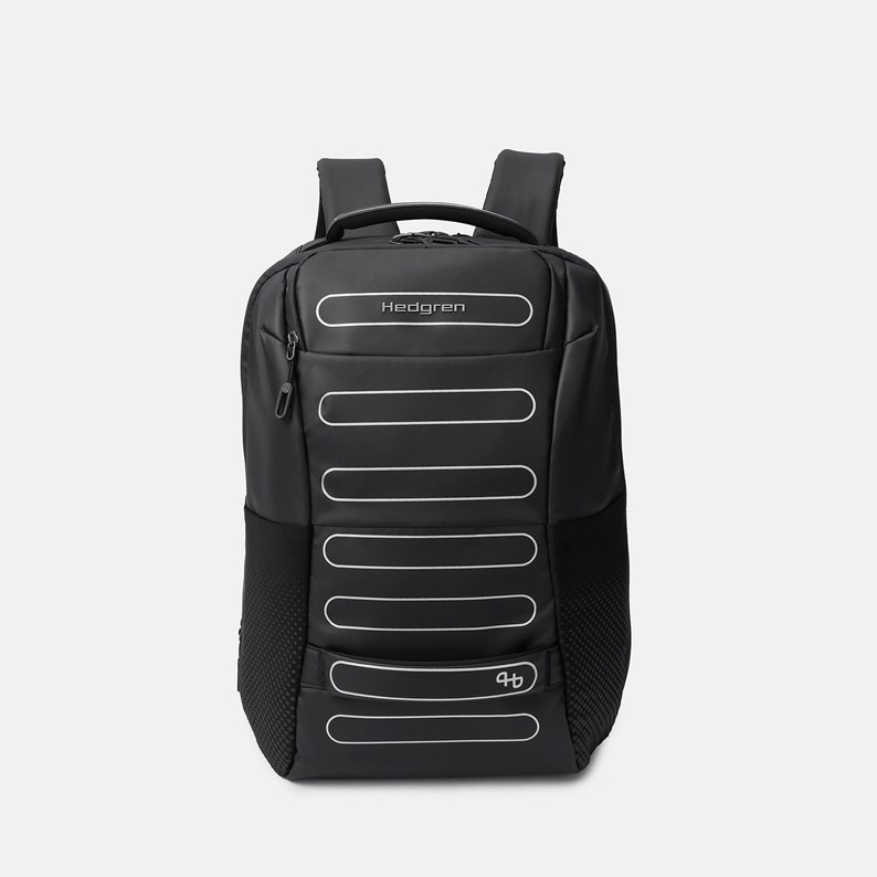 Y a-t-il quelque chose que ce sac à dos ne peut pas gérer ? Il y a beaucoup d'espace pour tous vos essentiels, mais si vous avez besoin d'en emporter un peu plus, le compartiment principal s'agrandit. Et le panneau arrière ergonomique garantit que le poids supplémentaire repose confortablement sur votre dos, afin que vous puissiez aller un peu plus loin dans vos aventures. S'il pleut, il y a une housse de pluie avec des détails réfléchissants qui s'adapte parfaitement au dessus. Le compartiment principal comprend six poches, dont un porte-papier, un porte-câble et une poche RFID. Et il y a un deuxième compartiment derrière pour votre ordinateur portable. Les poches extérieures comprennent un espace pour vos bouteilles et une poche arrière de sécurité pour vos objets les plus précieux, avec une pochette intelligente intégrée qui se glisse sur la poignée de votre valise si nécessaire. Les fermetures éclair verrouillables ajoutent une couche de sécurité supplémentaire au compartiment pour ordinateur portable. Le tout enveloppé dans des tissus robustes, hautement hydrofuges, hautes performances, 100 % recyclés qui ont ce style Hedgren si important.