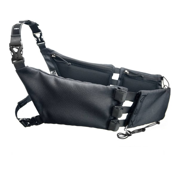 Les Xen Orbiter TrailVest - Hybride entre ceinture de course et sac à dos - Noir est un hybride entre un petit sac de sport et un sac de taille avec les meilleures caractéristiques des deux. L'Orbiter sert d'espace de rangement pour les petits objets que vous emportez habituellement avec vous lors de vos activités sportives et de vos voyages. Il est extrêmement confortable et sûr. Grâce à sa conception brevetée, l'Orbiter ne rebondit pas, ne tourne pas et reste confortablement sur votre corps. Le TrailVest est le modèle d'entrée de gamme de XEN, qui ne comporte que les caractéristiques les plus importantes. Elle permet de ranger par exemple vos clés, votre téléphone (max. 163 x 80 x 10 mm), de l'argent, des documents, des écouteurs, un portefeuille de sport (max. 130 x 90 x 10 mm), des mouchoirs, un couteau de poche, une clé USB, etc. mais aussi une gourde de 250 ml.