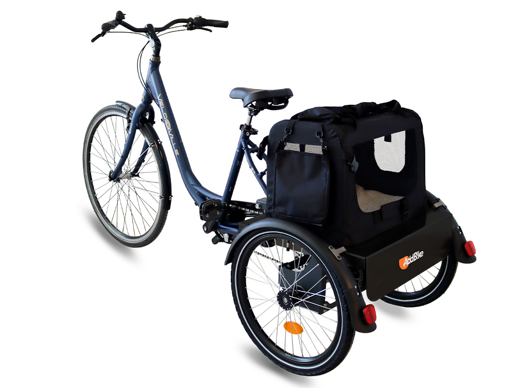 Le B-Back Animal remplace la roue arrière de vélo pour en faire un vélo à trois roues compact et très stable. Il rend possible le transport de votre animal de compagnie ! Cet accessoire pour tricycle vous permettra de transporter votre chien ou votre chat jusqu’à 35 kg . Il sera l’atout parfait pour vos trajets urbains ! Vous pouvez l'adapter à un vélo électrique si son moteur est dans la roue avant ou si c'est un moteur pédalier.