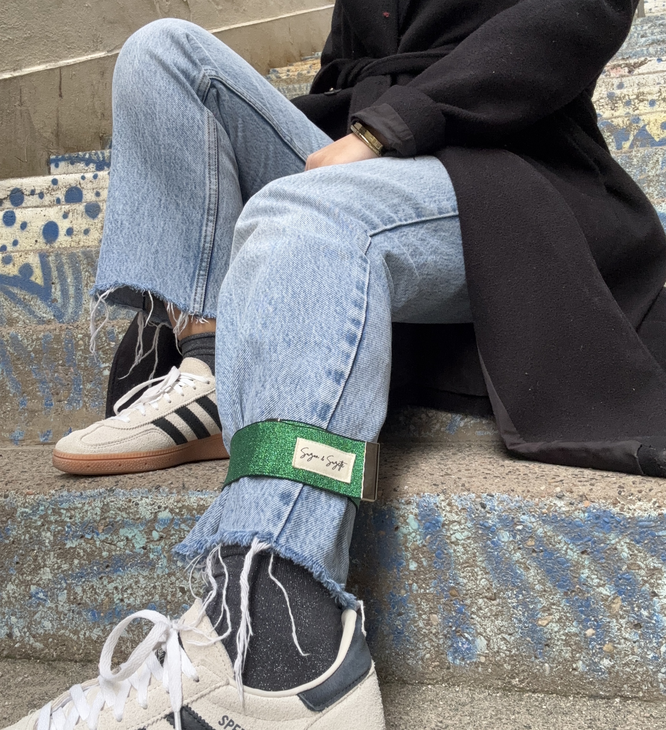 Serre-pantalon vélo réfléchissant paillettes vertes