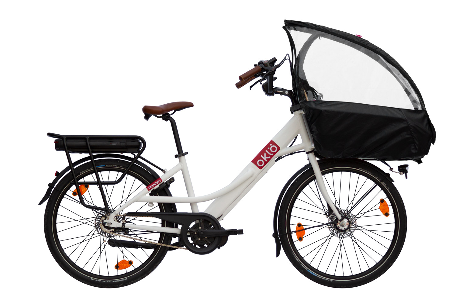 Familéö est le vélo familial de la gamme Oklö. Il offre un grand confort grâce à une position de conduite redressée.