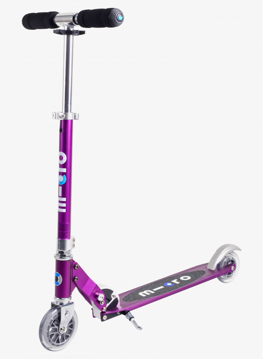 Avec un poids de seulement 2,5 kg, la Micro Sprite est une trottinette enfant hyper compacte qui se transporte facilement partout. Elle est équipée d'une béquille, se plie facilement et se dirige comme un vélo grâce à son guidon qui tourne à 360°.
