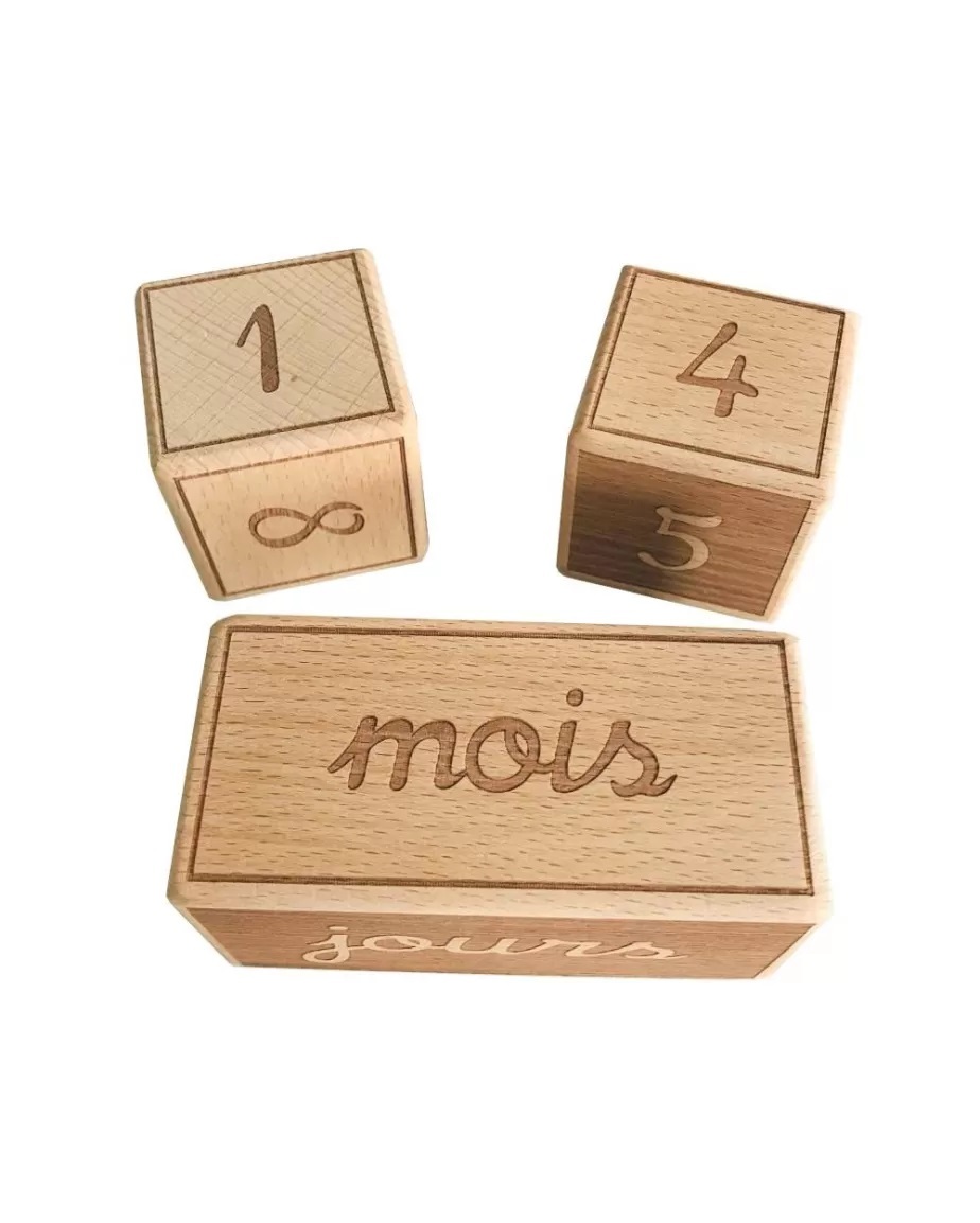 Mieux que des cartes étapes bébé à usage unique, la marque lyonnaise Le Petit Pousse a imaginé ces cubes en bois qui serviront à prendre des photos à chaque âge. Les cubes étapes devriendront un jeu d'éveil pour bébé, qui pourra les manipuler puis les empiler pour développer sa motricité fine, de même que plus grand pour trouver la bonne combinaison à chacun de ses anniversaires. Entre deux photos, ils feront une jolie décoration dans la chambre de bébé.