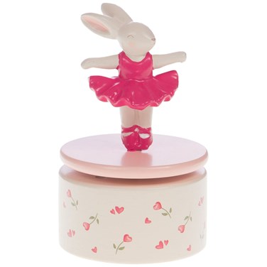 Figurine de lapin danseuse avec robe rose et motifs floraux, idéale pour une chambre d’enfant.