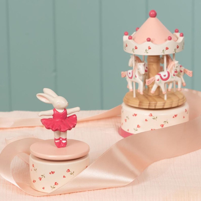 Laissez-vous séduire par l'élégance et la tendresse du carrousel Coeur en MDF signé Amadeus. Ce magnifique carrousel musical, délicatement décoré de chevaux dans les tons roses, évoque la douceur de l'enfance et la magie des fêtes foraines. En tournant, il diffuse la douce mélodie de À la claire fontaine, apportant une note poétique et apaisante à votre intérieur. \nObjet de décoration raffiné autant que cadeau plein de charme, il fera rêver petits et grands et trouvera parfaitement sa place dans une chambre d'enfant ou sur une étagère pleine de souvenirs.