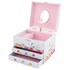 Cette jolie boite à musique comprend deux tiroirs et un baguier pour ranger les précieux précieux de votre enfant. Elle est dotée d'un miroir ovale pour une touche de féérie.