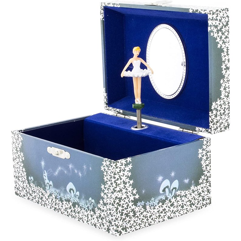 Lors de l’ouverture du coffret à bijoux, une petite danseuse se met à tourner au son d’une délicate petite musique : Le lac des cygnes (Tchaïkovski).
