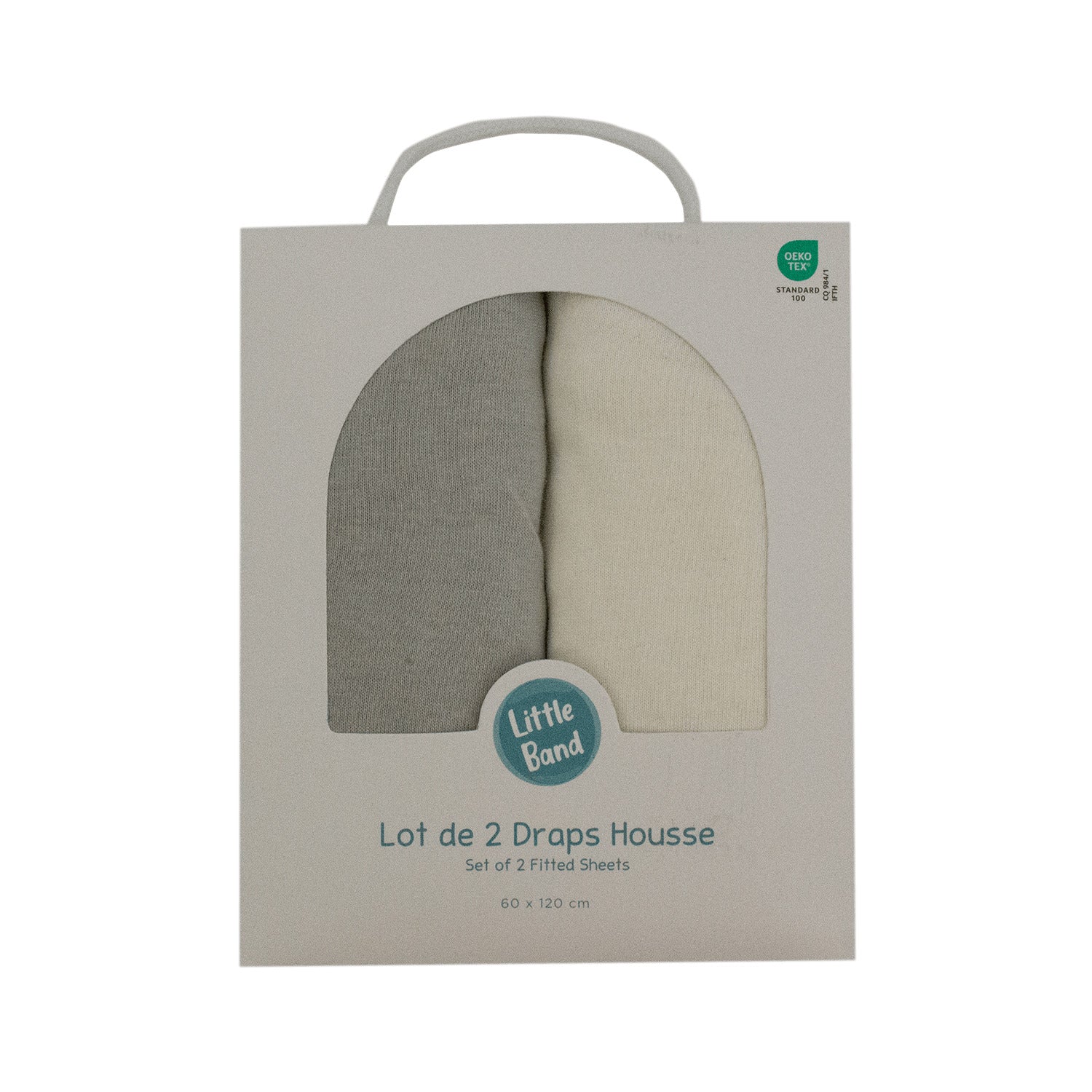 Drap housse 60x120 cm - lot de 2 - écru gris - draps housse bébé en coton
