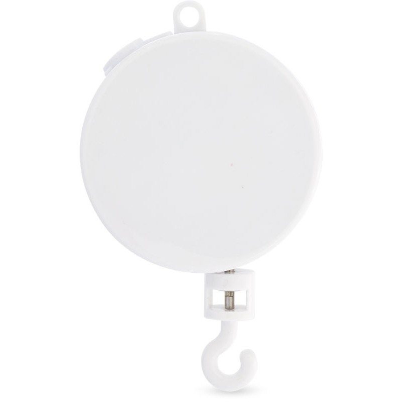 Cette boite à musique permet de faire tournoyer un mobile au son d’une douce musique : Berceuse de Mozart. Pour remonter le mécanisme musical, il suffit de tourner la clé située au dos de la boite. La musique peut être interrompue grâce au bouton d’arrêt sur le dessus de la boite. Diamètre 7 cm.