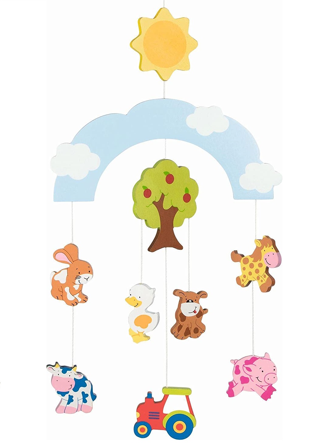 Mobile ferme, un mobile décoratif de la marque Goki. Référence 52901.Age minimum recommandé : 12 moisAge maximum recommandé : 3 ans