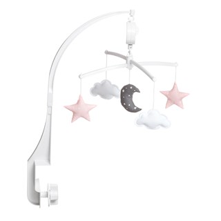 Un mobile musical lune et étoiles au design intemporel pour endormir bébé au son d’une jolie mélodie Adaptable à tous les lits à barreaux , fonctionne sans pile Fabriqué à la main dans atelier sarthois de Pouce et Lina, un indispensable de la liste de naissance