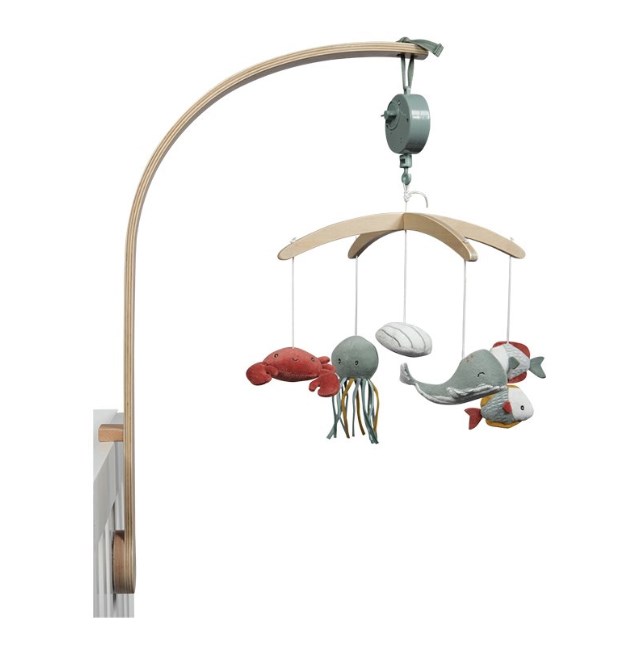 Mobile musical avec potence et 5 jouets suspendus - Ocean mint, un mobile musical en bois de la marque Little Dutch, ref LD4844.Age minimum recommandé : 12 moisAge maximum recommandé : 2 ans