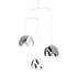 Mobile Olephants. Réf. : 149 Ce mobile tridimensionnel est fait d'un morceau circulaire de papier d'aluminium. Prêt à être accroché sur place. Matériel : film sérigraphié, dimensions : 45x35 cm. Conçu dans une gamme de gris spécialement pour attirer l'attention de votre bébé.