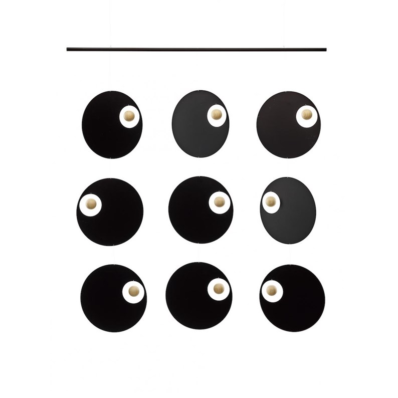 Nous sommes fiers de présenter l'emblématique ""Squareroot 9"", un mobile conçu en 1972 par le fondateur de Flensted Mobiles,. Christian Flensted. Ce mobile peut être comparé à une peinture - la principale différence est que le mobile s'accroche à 33 cm du mur et que cette pièce d'art déplace et jette les ombres les plus merveilleuses. Les crochets pour accrocher le mobile sont fournis dans la boîte. Comme pour tous nos autres mobiles, cette pièce est fabriquée à la main au Danemark. Design: Christian Flensted. Taille: 80 x 71 cm. Matériel: Aluminium, bois