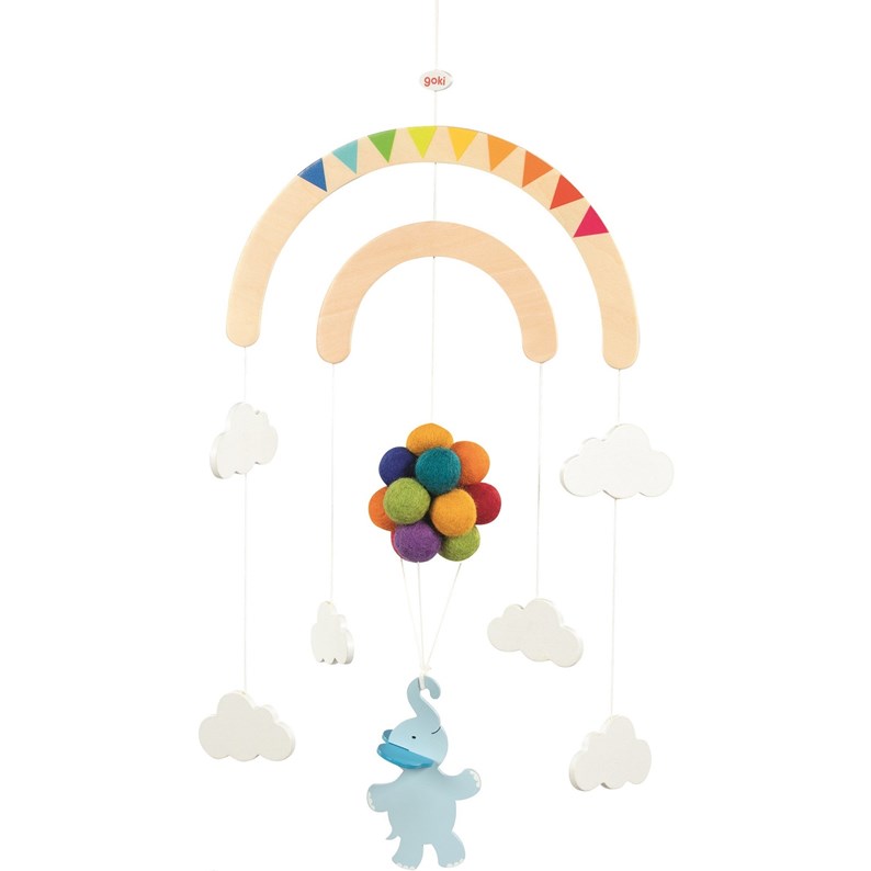 Mobile Voyage de l'éléphant, un mobile décoratif de la marque Goki. Référence 52867.Age minimum recommandé : 12 moisAge maximum recommandé : 3 ans