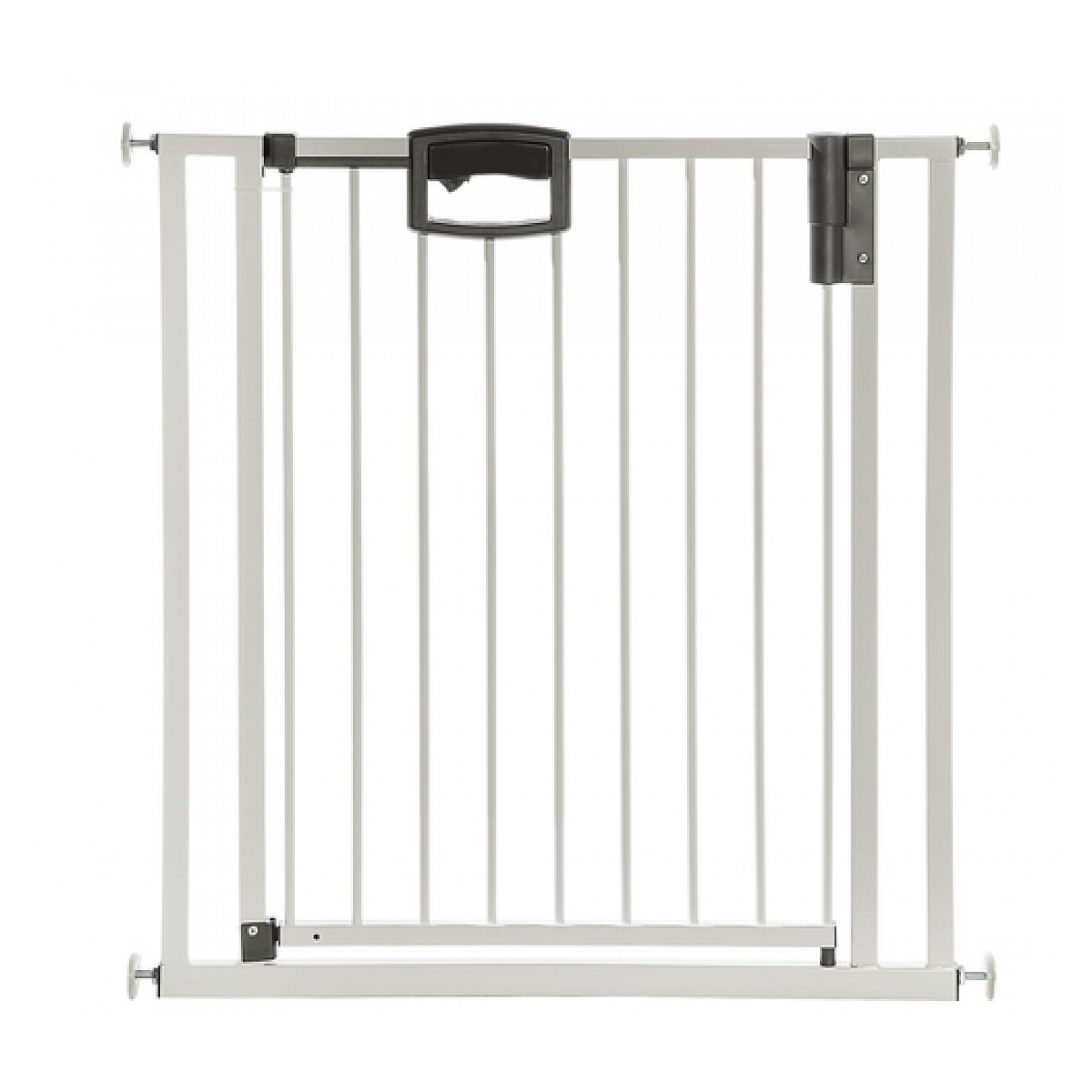 Sécurité absolue. Utilisation facile au quotidien. S'adapte en toute flexibilité aux besoins individuels et facile à monter : la barrière de porte Easylock Wood Plus répond à des exigences très élevées de sécurité et de qualité et convainc au quotidien par son maniement facile et sa flexibilité ainsi que son montage particulièrement rapide. Montage sûr, sans vis : la barrière de porte est livrée avec des coques de maintien. Ces dernières sont collées avec des tampons adhésifs double face extra-forts (incl.) dans l'ouverture à sécuriser. La barrière est ensuite coincée en toute facilité dans les coques de maintien. Remarque : Les tampons adhésifs adhèrent de manière fiable et sûre sur toutes les surfaces lisses (par exemple le bois, le plastique). Sur les surfaces rugueuses, telles que le plâtre, il est recommandé de percer des trous dans les coques de maintien. Flexibilité maximale grâce aux accessoires disponibles séparément : Disponible en deux tailles pour plusieurs largeurs de passages : veuillez choisir le modèle adapté à l'ouverture que vous souhaitez sécuriser, largeur de 68-76 cm ou 80,5-88,5 cm. Avec extensions (Art. 0091VS+ et 0092VS+), la barrière de porte peut être agrandie de 8 à 16 cm de chaque côté et donc être utilisée pour des ouvertures de porte plus grandes. Avec des systèmes de blocage supplémentaires (Art. 0049ZK+), transformable en barrière d'escalier à fixer sur des barreaux de rampe. Avec broche en Y (Art. 0048YS), pour fixer également sur des piliers et des barres rondes (jusqu'à Ø 7 cm ). Les autres points forts de la barrière de porte et d'escalier Easylock Plus Sans mur en bref : La barrière pivotante s'ouvre dans les deux sens. Un butoir (incl.) peut être monté en option, afin qu'elle ne puisse être ouverte que dans un seul sens. La barrière pivotante s'arrête à partir d'un angle d'ouverture d'env. 100°. Verrouillage simple et sûr de la barrière pivotante. Fermeture centrale à une main pour adulte (serrure de sécurité 2 actions). Extensible, largeur de passage confortable de 51 cm (4792+) et 38,5 cm (4791+) Hauteur de barrière sûre de 81,5 cm Poignée en plastique hygiénique pour le nettoyage Montage rapide : livraison en pièces semi-détachées Le montage est facile, le matériel de montage standard requis est inclus. Fabriquée en métal laqué (durable, résistant aux rayures, inoxydable). Tous les vernis et peintures utilisés sont résistants à la salive et à la sueur, exempts de substances nocives et répondent aux exigences élevées également applicables à la sécurité des jouets pour enfants. Certification TÜV : le TÜV Thüringen a vérifié la stabilité, la durabilité et la composition chimique et décerné le certificat GS. Contient : Barrière de porte à pression Easylock Plus métal 80,5 cm - 88,5 cm Blanc/Gris.